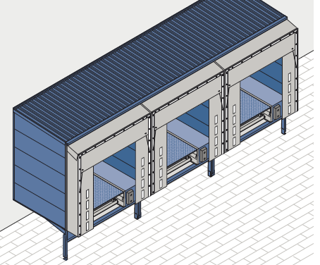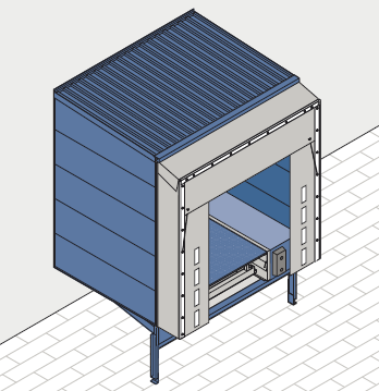 При ремонте складов шлюз- тамбур являются лучшим решением, так как установка всей перегрузочной станции не требует серьезной реконструкции цеха, склада. Они могут устанавливаться как отдельная перегрузочная станция, или располагаться под разными углами перед зданием от 30° до 150° для маневрирования транспорта. При заказе тамбура необходимо знать: высоту рампы,длину и ширину тамбура.Серийно с грунтовочным покрытием серо-белого цвета по образцу RAL 9002 или цвета белого алюминия по образцу RAL 9006